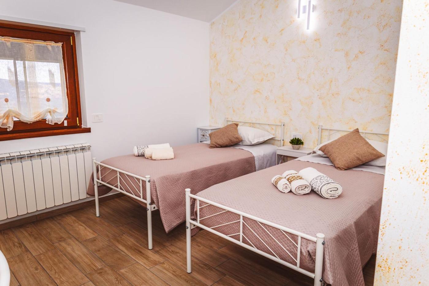 Camera MatrimonialeDoppia con Letti Singoli con Balcone. The fully equipped kitchen features a stovetop, a refrigerator, kitchenware and a toaster. The air-conditioned twindouble room offers a flat-screen TV, a private entrance, a tea and coffee maker, a seating area as well as garden views. The unit offers 2 beds.